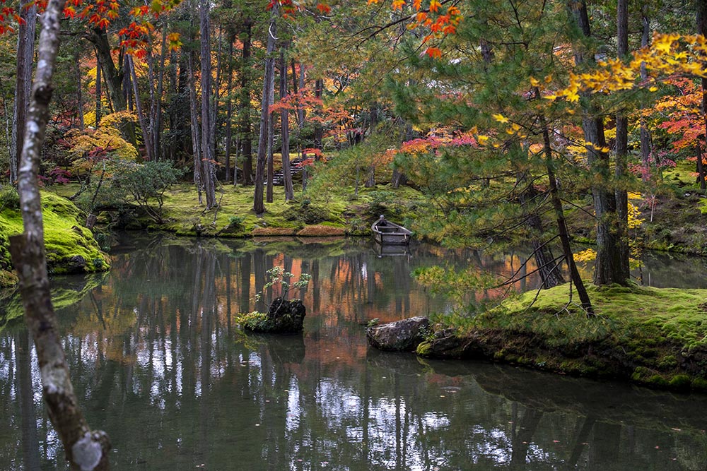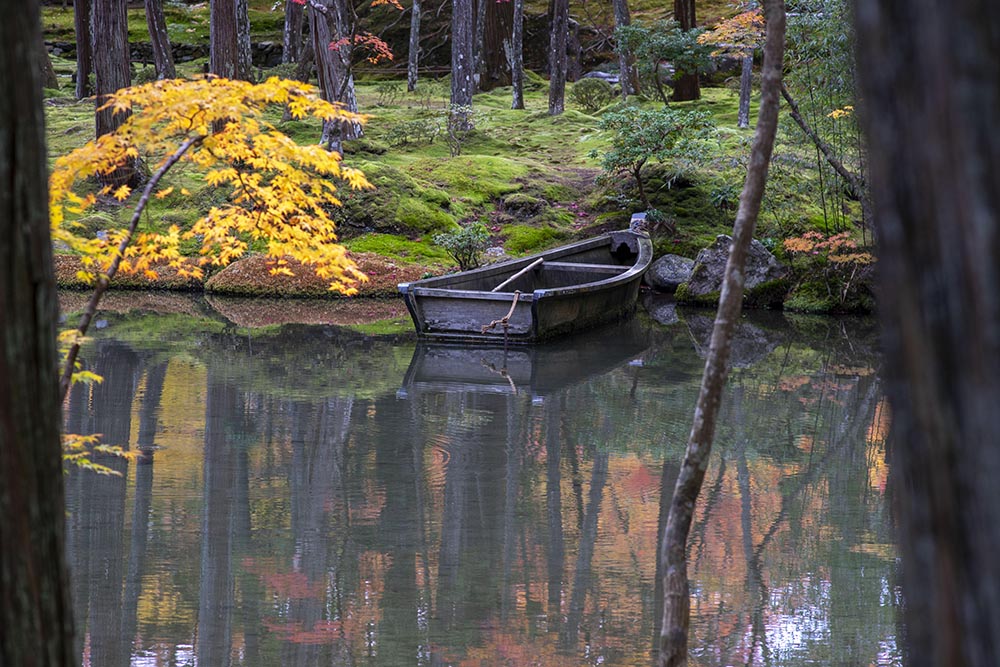 事前の申し込みが必要。それだけの価値はあると思う。特に新緑と紅葉は格別。 写経をしている時に、ふと本堂の襖絵が気になりました。すごくモダンな画風がうまく溶け込んでいます。 作者は堂本印象(1891-1975)